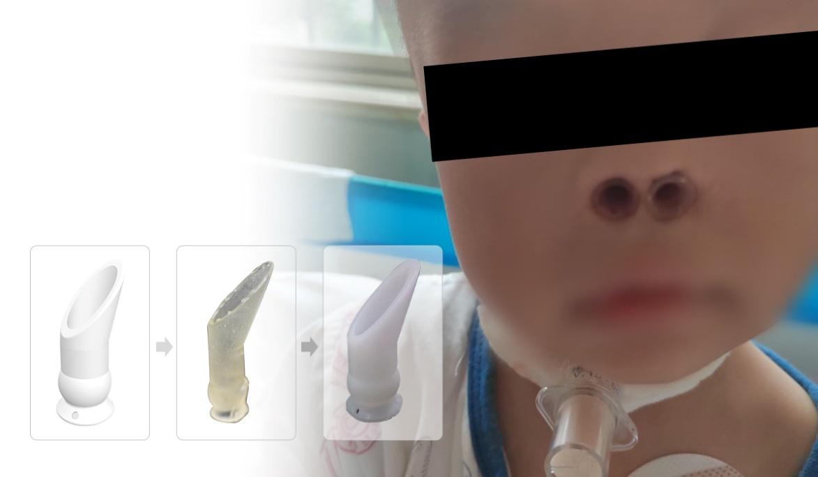 经过手术与3个月的迭代改进,患儿逐步实现了堵管经鼻呼吸,发挥正常鼻腔功能,身体和言语发育健全。定制化的支撑模隐蔽性好、贴合度高、舒适性强,且护理方便。患儿自己甚至很快就学会了摘取和佩戴,重新回到了正常的生活轨道。