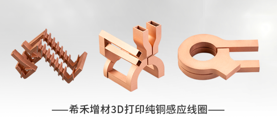 希禾增材绿激光3D打印专注于纯铜及铜合金等高反金属、难熔金属的选择性激光熔化(SLM),制造过程基于粉末床工艺。待生产的感应线圈通过逐层堆积金属粉末,并使用绿激光熔合成型,无需后期焊接,结构致密且精度高。