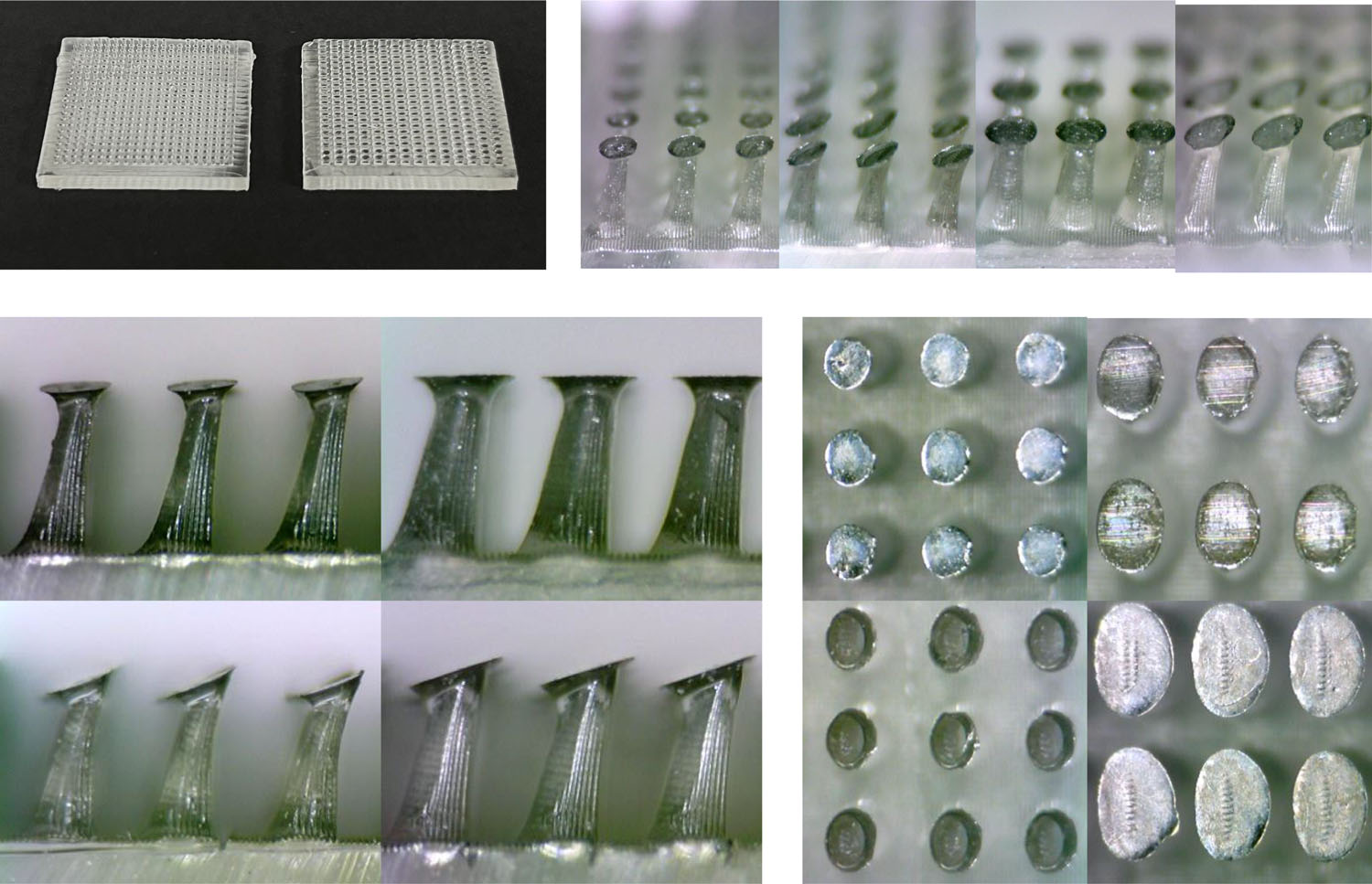 这种受控的过度固化工艺能够自发形成倾斜的各向异性微结构,从而将原本对称的CAD模型转化为主动的设计工具。最终,我们能够提供一种简化且可扩展的方法,用于生产具有高重复性的功能性微结构,无需复杂的CAD修改或二次制造工艺。