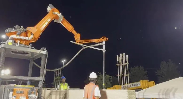 3D主导的3D打印技术,总承包商FMGI参与执行。建筑的墙体部分仅用了7天(75小时)便完成建造,相比传统水泥砌筑方法所需的三周时间大幅缩短。此外,施工过程仅需一个五人小组操作两台3D打印机器人,显著减少了人力投入。