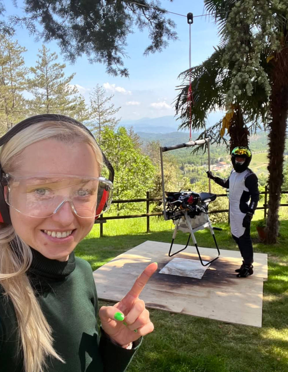 Tomasz此前已在系留状态下对飞行摩托进行了测试。在5月4日,这个全球知名的“星球大战日”,Tomasz身着全套冲锋队员的服装,驾驶Airbike穿梭于森林之中,再现了电影中恩多星(Endor)上飞行摩托追逐的经典场面。据观察,他似乎使用了本田CB