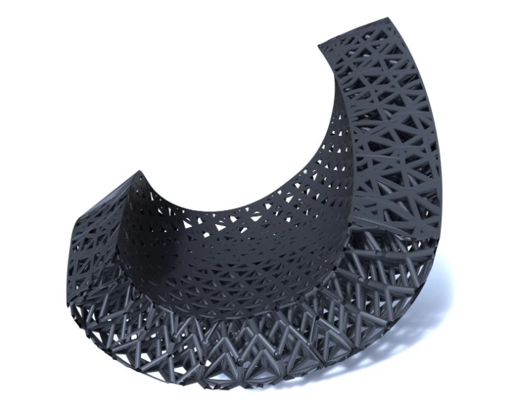 用可重复的晶格图案填充曲面头盔内部的挑战促使VICIS采用了Carbon的设计引擎软件。平面网格结构不足以贴合人体头部的解剖形状,双方联手开发了一种体积填充策略,以保持复杂几何形状的均匀性。这种方法产生的晶格图案规则,边缘暴露,需要额外的支撑。沿着网格外表面施加的第二层网格层起到了支撑作用,增强了结构完整性并改善了表面光洁度。