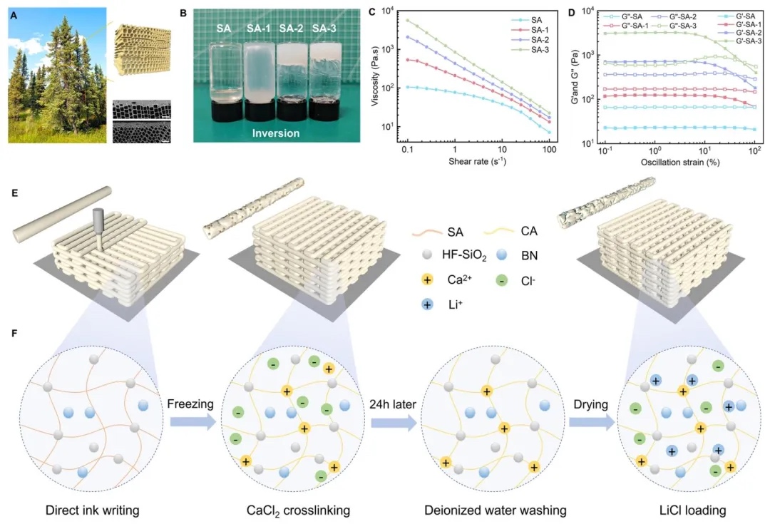 在此背景下,上海交通大学王如竹教授团队开展合作研究。他们受到树木分层多孔微结构的启发,利用直接墨水书写3D打印技术,成功制备出具有垂直定向通道和坚固结构的仿生吸附剂整体材料。该材料具有丰富的孔隙结构,涵盖毫米到微米尺度,能够实现快速吸水和便捷再生。相关工作以“Biomimetic