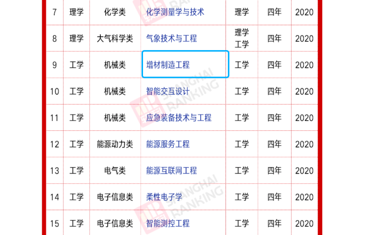 2021年2月10日,河南新乡学院成为全国第一个开设增材制造工程(专业代码:080217T)本科专业的大学,“增材制造工程”专业属于机械类,学时4年,截至目前,已经有23个大学开设“增材制造工程 ”本科专业,其中包括:
