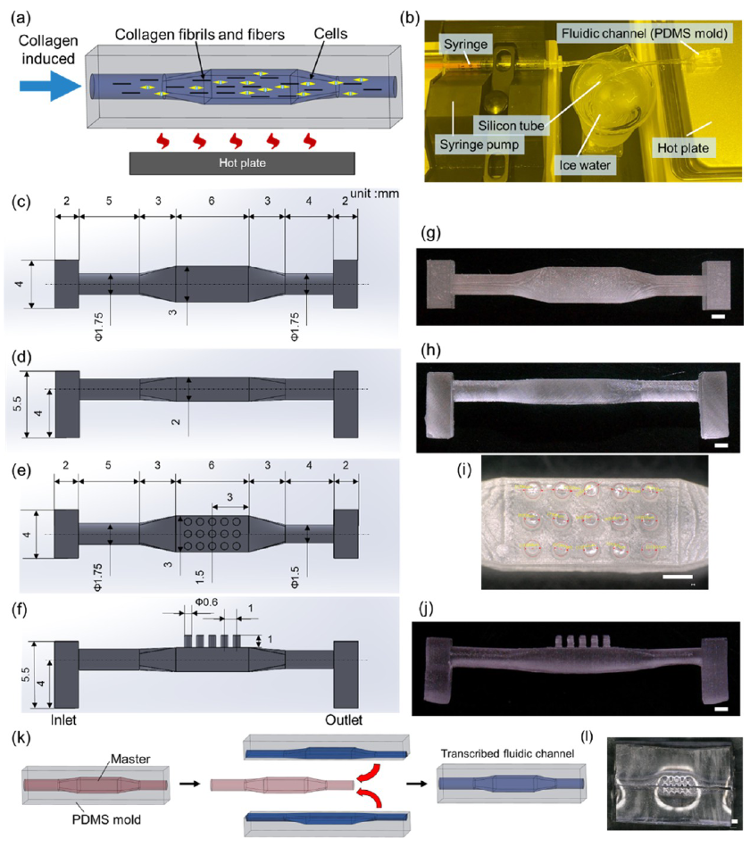 研究团队创新性地结合3D打印技术与流体通道制备,开发了一种控制胶原蛋白水凝胶尺寸和方向的新方法。他们设计了两种流体通道:单向的"水平定向模型"和通过添加垂直突起创建的双向"垂直&水平定向模型"。