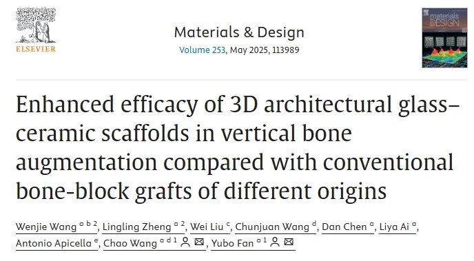 Design》上。研究发现3DP在垂直骨增量方面表现出色,为未来临床垂直骨增量应用提供了新的解决方案。该论文通讯作者为樊瑜波教授与王超副教授,第一作者为博士研究生王文洁和郑玲玲,北京航空航天大学为第一完成单位。