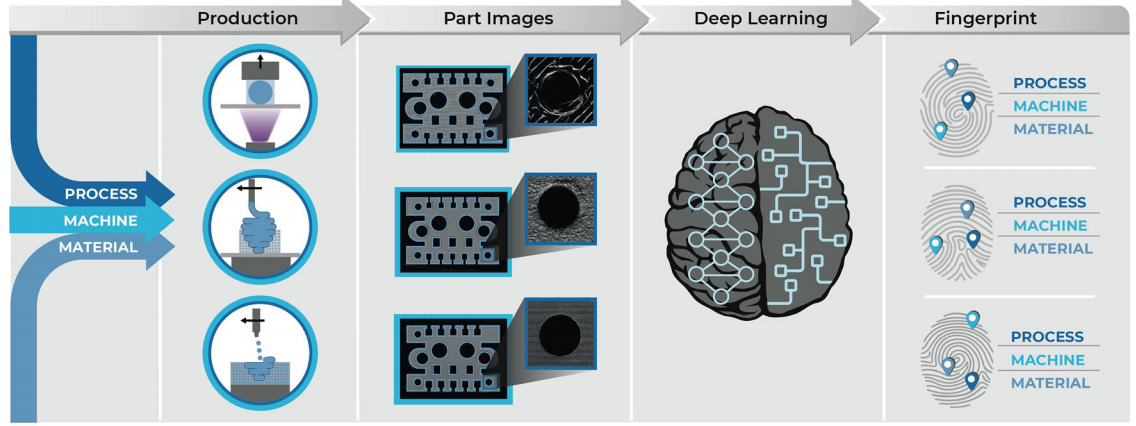 ●发现AM设备的独特模式 :AM设备在其生产的每个零件表面都会留下独特的纹理模式,这些模式可用于识别设备本身。