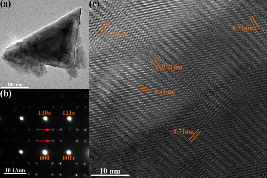 17.7°),当烧结温度达到或超过1400摄氏度时,超晶格衍射峰消失。B位1:2有序结构是决定复杂钙钛矿结构微波陶瓷介电损耗的关键因素。此外,B位有序结构的形成受动力学因素控制。为了提高光固化BZN陶瓷的介电性能,烧结样品在1300摄氏度条件下进行了24小时的退火处理。结合TEM电镜表征发现,退火样品中存在明显的超晶格电子衍射斑点。高分辨透射电子显微镜(HRTEM)通过观察两种不同的晶格间距:0.71纳米,对应有序结构;0.41纳米,对应无序立方结构,直接证明了光固化BZN样品中B位1:2有序畴结构的存在(图2)。通过退火处理,光固化样品中有序度最大提高至81.31%,退火处理后样品呈现出优异的介电性能:介电常数为38.9,品质因子为89,600GHz,谐振频率温度系数为22ppm/℃。