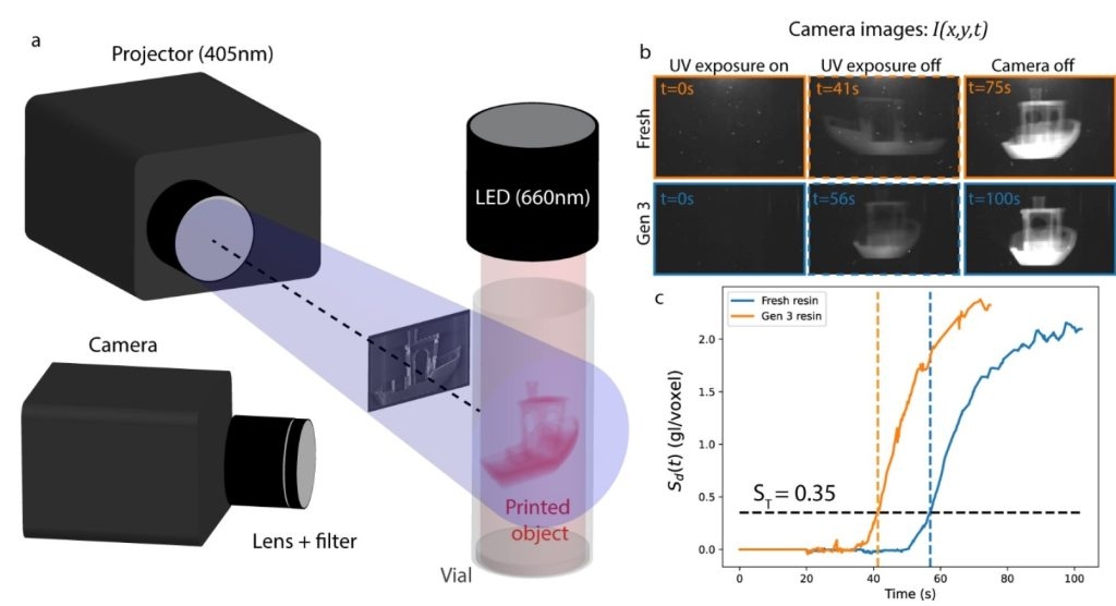新系统被称为AE-VAM(自动曝光体积增材制造),它通过实时监控树脂内部的光散射来自动决定何时终止打印过程中的曝光。这一创新消除了之前手动调整的必要性,而手动调整一直是限制VAM技术一致性和商业可行性的关键因素。