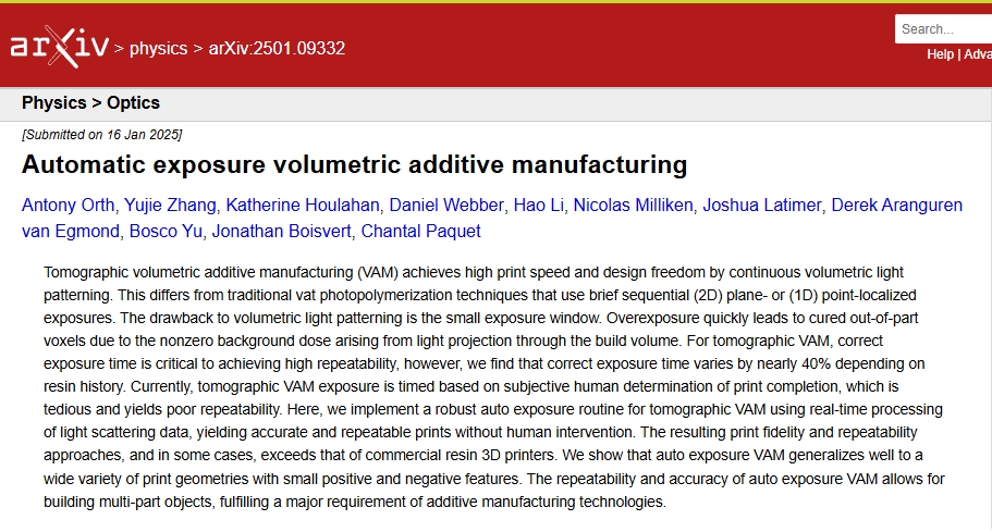 2025年5月20日,加拿大的国家研究委员会与维多利亚大学的研究团队开发了一种用于断层扫描体积增材制造 (VAM)