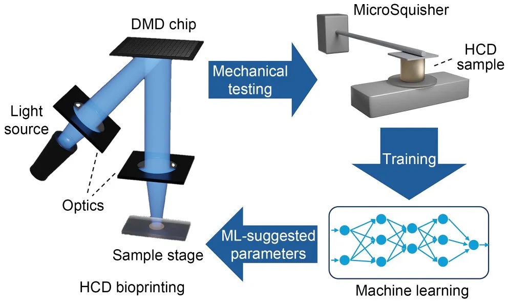 本研究论文聚焦机器学习辅助高细胞密度生物打印硬度预测。细胞负载水凝胶的生物打印是组织工程中一个迅速发展的领域。数字光处理(DLP)三维(3D)生物打印技术的出现革新了复杂三维结构的制造。通过调整光照,