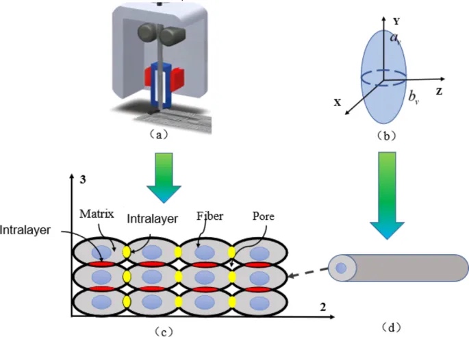人工智能(AI)与机器学习(ML)技术正推动制造业革新,其中增材制造(AM)作为核心创新,通过逐层堆叠材料实现了复杂结构的定制化生产。材料挤出式3D打印技术因其低成本和高适应性,成为连续纤维增强复合材料(3DP-CFRPCs)制备的重要方法,其高强度、轻量化特性在航空航天、汽车等领域极具潜力。然而,打印过程中产生的孔隙、层间结合缺陷等微观结构问题严重制约材料力学性能,而传统实验方法耗时耗力,亟需高效精准的计算模型替代。