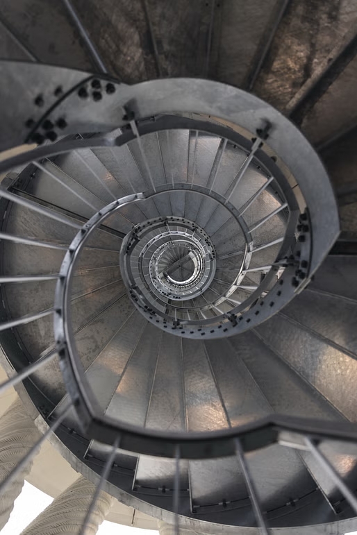 塔内空间以垂直堆叠的房间构成,内部通过螺旋楼梯连通,形成从底部封闭幽暗空间逐步过渡至顶部采光穹顶的空间序列。设计团队将它描述为“抽象且气氛浓厚的空间体验,从地面封闭到顶部明亮通透的变化,营造出沉浸式的建筑叙事”。