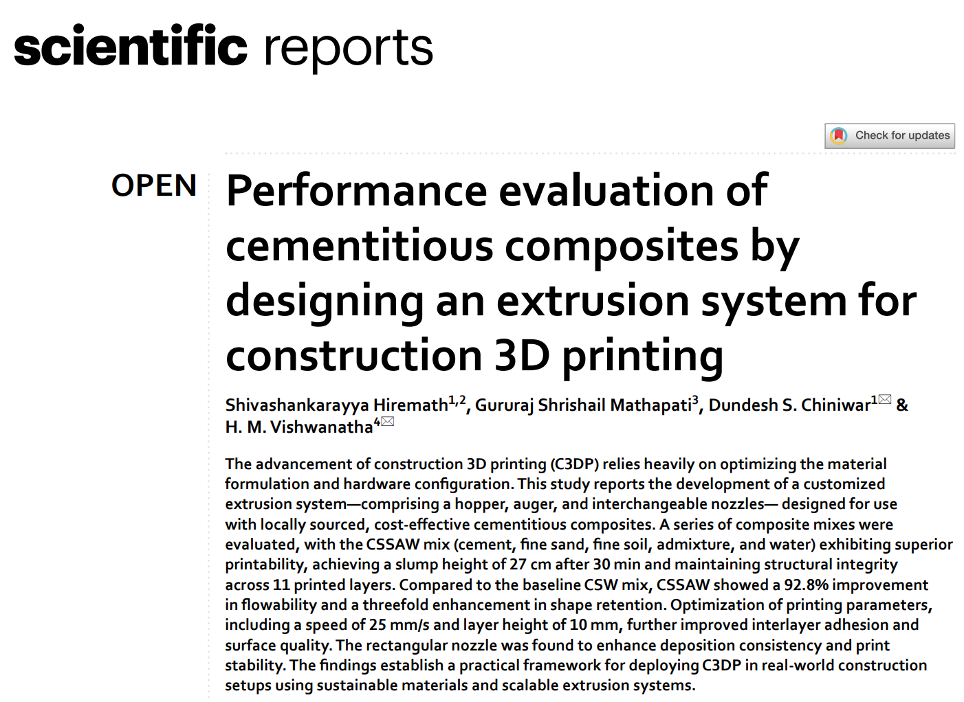 2025年5月,印度研究人员在Scientific Report上发表了一项突破性研究,让这一科幻场景离我们更近了一步。研究团队成功开发了一套经济实惠的建筑3D打印系统,能够使用本地材料打印出结构稳定的水泥构件,为未来建筑行业带来了新的可能。