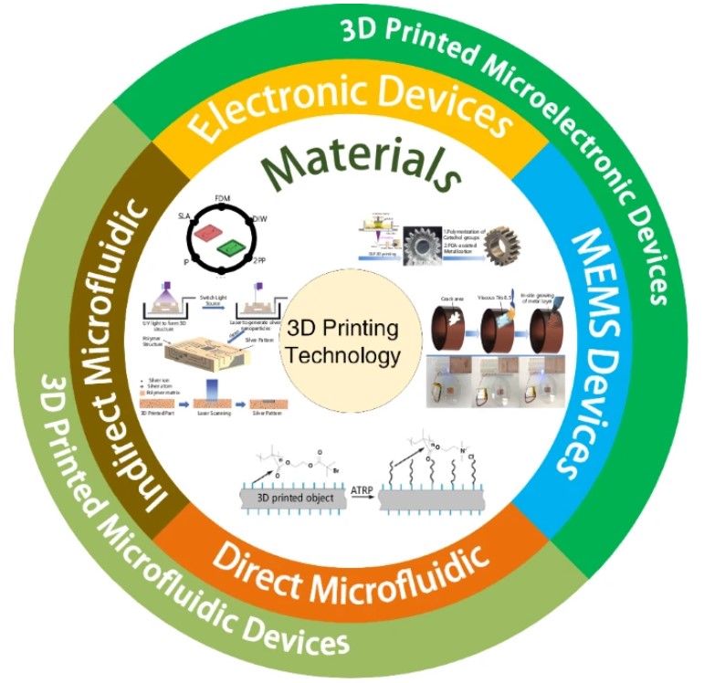 2025年5月24日,北京邮电大学、中国电子科技集团公司第54研究所(CETC 54 )、中山大学、深圳大学和电子科技大学的研究人员近期共同撰写了一篇新综述,探讨了3D打印在微电子和微流体应用方面的最新进展。
