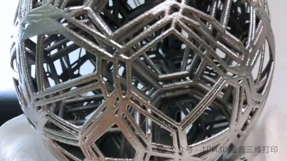 而盈普 SLS 技术的「无支撑一体成型」优势,就像让雕塑 “凭空生长”——粉末材料在激光烧结过程中会自然形成内部支撑力,无需任何额外结构,打印完成后扫去多余粉末,复杂的网状编织结构就能完整呈现,既保留了设计的自由灵动和美感,又省去了后期处理的繁琐工序。