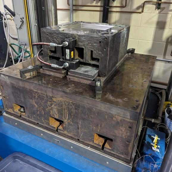 △3D 打印模具安装在田纳西大学诺克斯维尔分校纤维与复合材料制造工厂的一台Wabash MPI 150吨液压机上。图片来源:田纳西大学诺克斯维尔分校。
