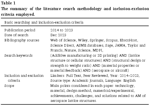 篇与增材制造用于航空航天应用的晶格结构相关的文献。这些文章根据标题、摘要、关键词、结论、材料和方法等多个部分进行了全面筛选。此外,还纳入了上述数据库之外(如表