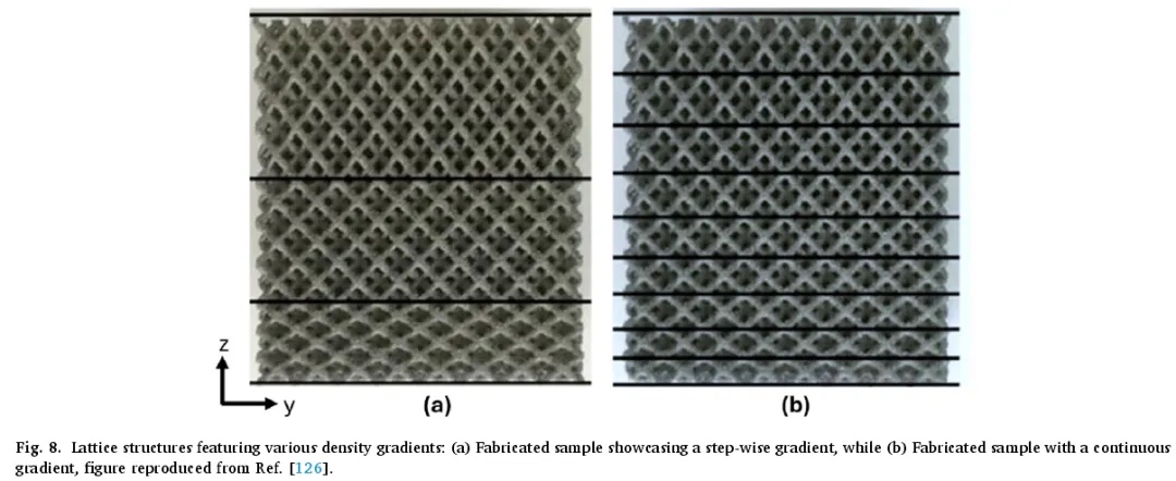 另一方面,通过改变单元胞的拓扑结构及其大小,可以在晶格材料中引入密度梯度。例如,肖和宋(如图 8