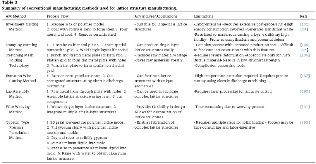 尽管增材制造有诸多优点,但明确其局限性至关重要,包括特征尺寸、表面质量以及在设计晶格结构时对支撑结构的需求等因素。这一点至关重要,因为晶格结构的最小特征尺寸和材料与所采用的特定增材制造方法密切相关。在这个阶段,增材制造设计(DfAM)方法变得很重要,其目标是为预期目的实现最有效的结构。增材制造设计还旨在降低生产成本和时间,同时优化零件的功能以适应增材制造。图