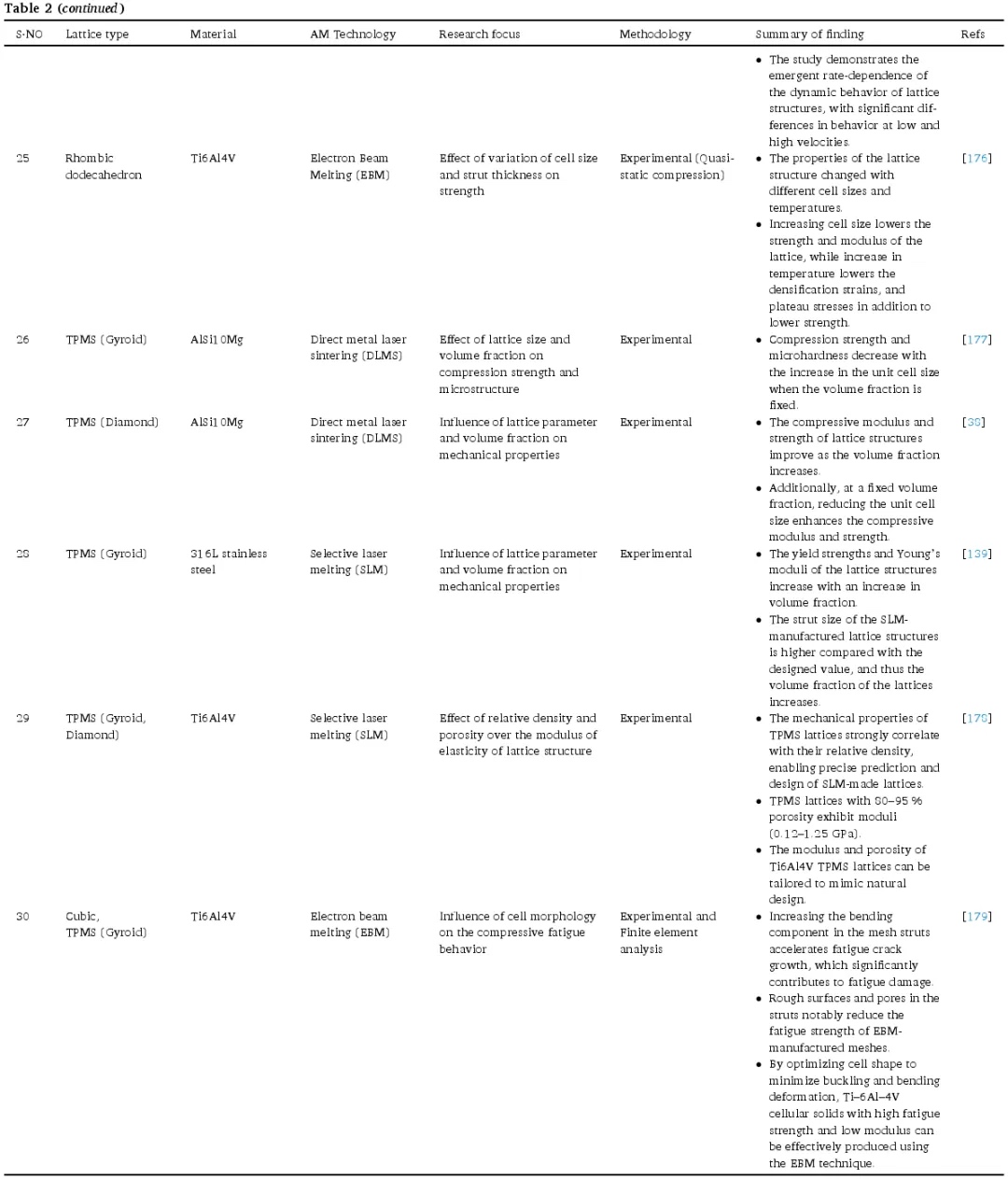 之间变化时会增强力学性能。支柱取向也会影响机械强度,对角构建的样本强度降低,而热等静压(HIP)等热处理可以通过改变微观结构和力学性能来提高延展性。此外,不同的旋转角度和单元胞大小会影响刚度和变形机制,在