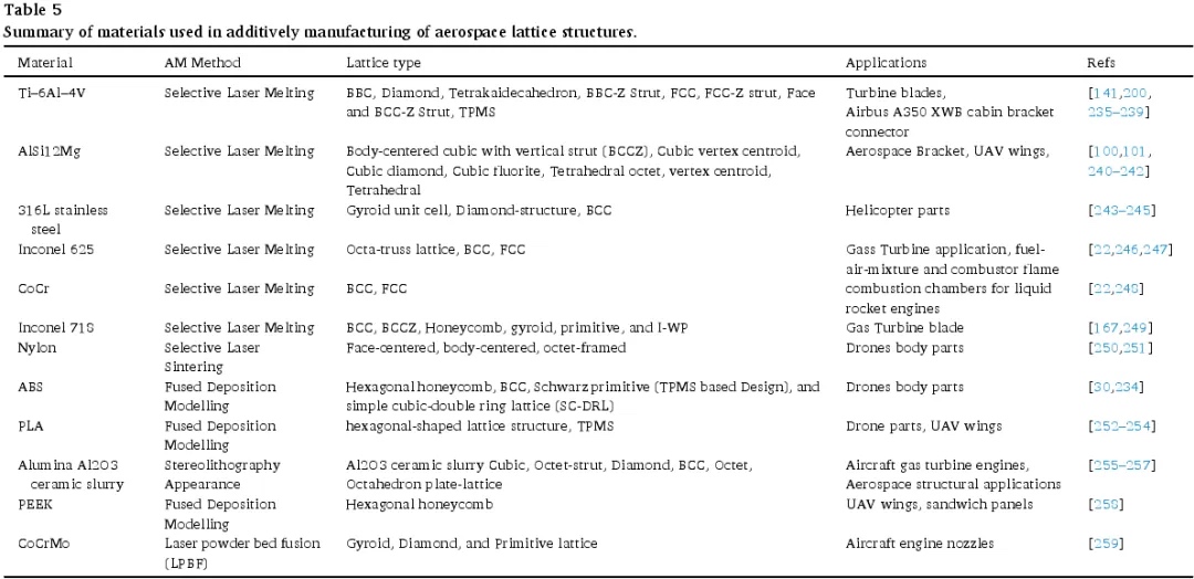5 节报告了用于航空航天晶格的制造技术和材料的发展。此外,第 6 节提供了关于晶格设计优化技术的详细文献。最后,第 7