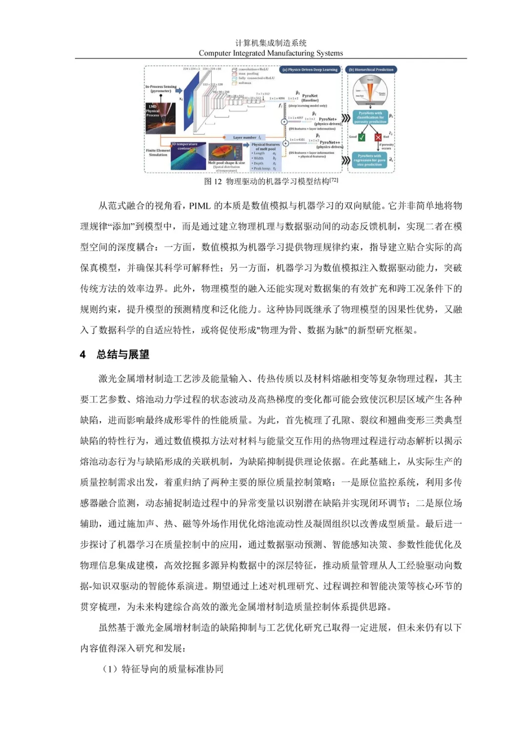 Learning,PIML),探讨了机器学习在质量控制中的应用,基于其高效挖掘多源数据深层特征,推动质量控制由经验驱动向数据与知识双驱动转变,为后续激光金属增材制造质量管理提供新思路。