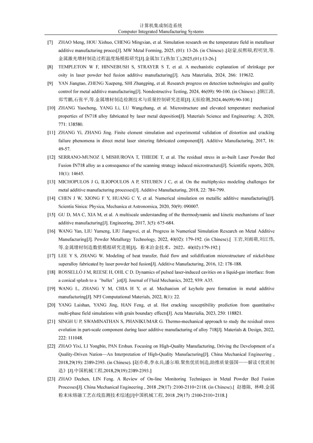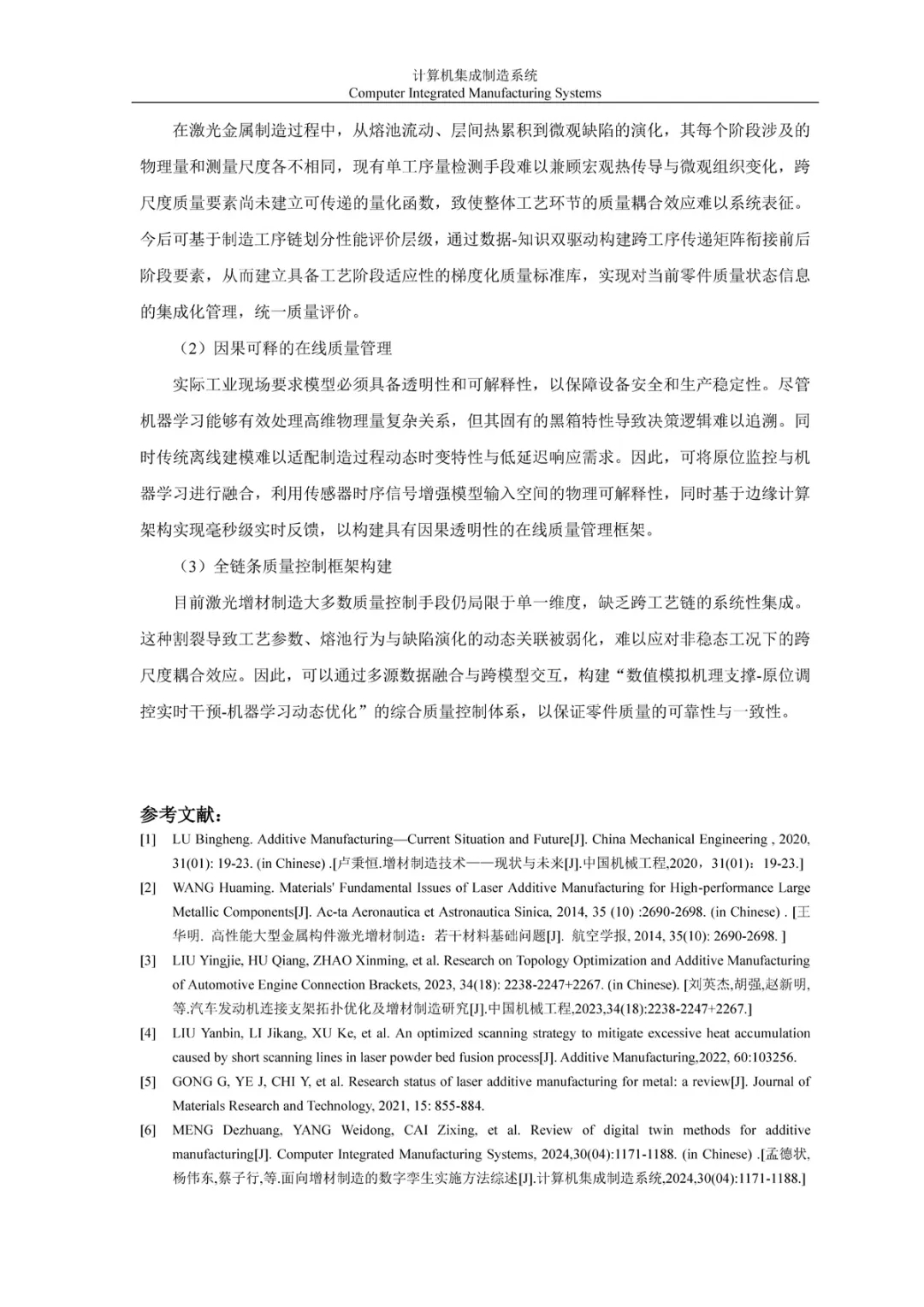 杨伟东,高黄平,赵雨濛,王媛媛,朱东彬.激光金属增材制造过程的质量控制研究综述[J/OL].计算机集成制造系统.https://doi.org/10.13196/j.cims.2025.0104