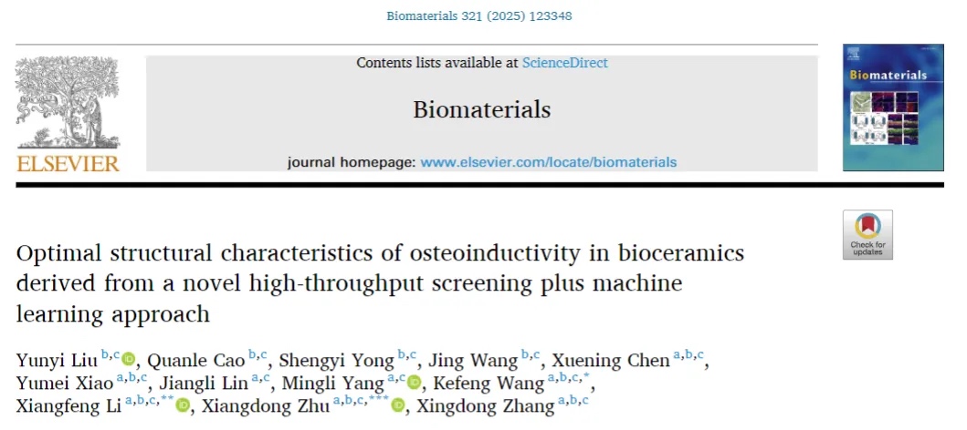 approach”为题发表在《Biomaterials》上。论文第一作者为四川大学生物医学工程学院/国家生物医学材料工程技术研究中心的博士研究生刘芸伊,四川大学材料基因工程研究中心/国家生物医学材料工程技术研究中心/生物医学工程学院的朱向东研究员、王科锋副研究员和李向锋副研究员为该论文的共同通讯作者。