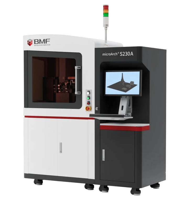 迭代升级工业级自动化超高精度3D打印设备microArch® S230A是一款针对精密样件加工的高性能、高精度、高效率的产品,具有以下突出特点和优势: