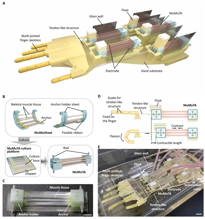 今年3月,东京大学研究团队成功研发出全球首款由培养肌肉组织全驱动、具备多关节灵活运动的仿生机械手,并被日本ANN