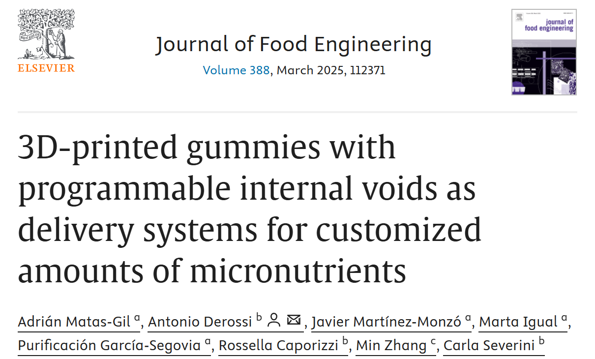 2025年6月20日,西班牙瓦伦西亚理工大学(UPV)、意大利福贾大学和中国江南大学的研究团队开发了富含维生素和矿物质的 3D 打印软糖补充剂。