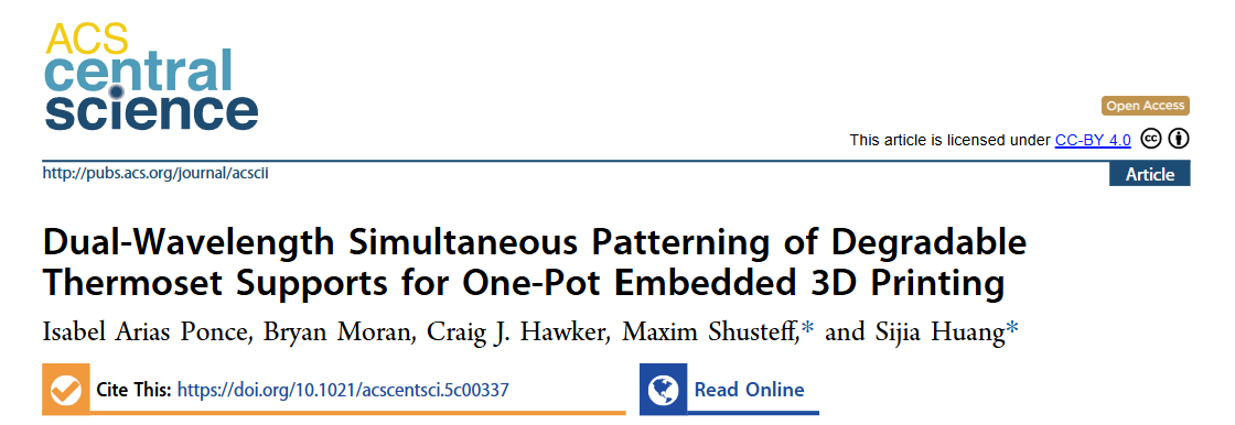 Printing”的研究引起了业界的关注:研究人员开发出一种基于“双波长同步成像”的大桶光聚合(Vat Photopolymerization,VP)技术,首次实现在“单一树脂”体系内打印出永久性结构与可降解支撑双材料物体。