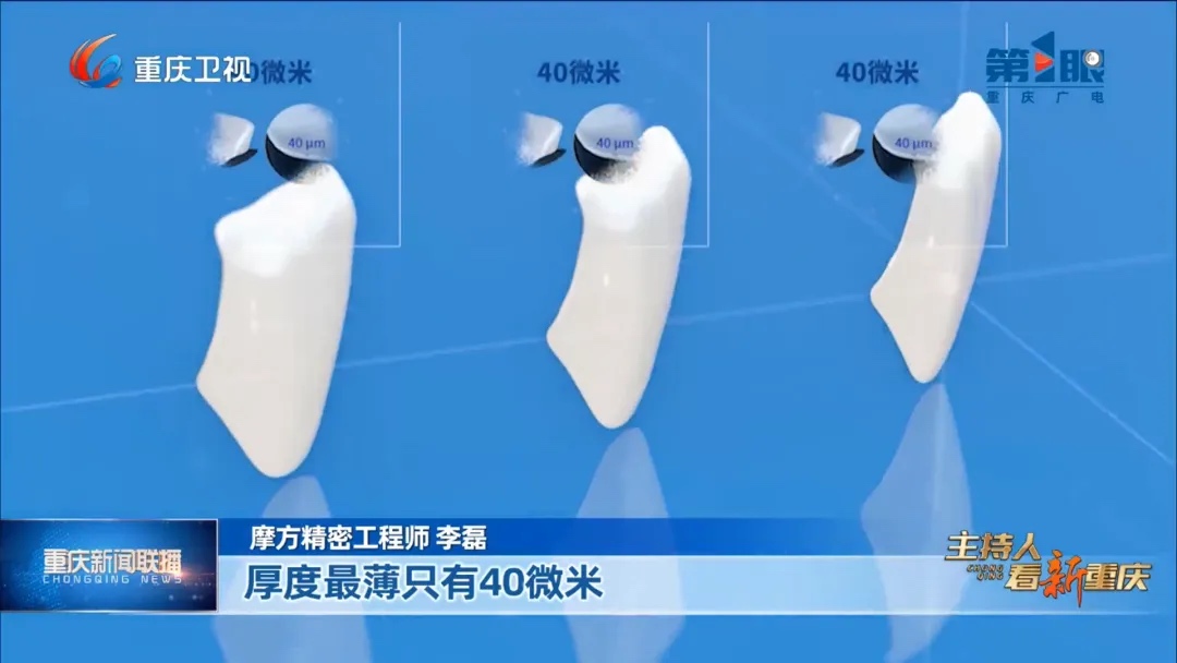 2025年6月27日,摩方精密微纳3D打印“极薄氧化锆牙齿贴面"产品与技术,亮相重庆卫视《大有可为新重庆》专题报道,引发社会各界广泛关注。从精密制造技术不断突破的新高度,到40微米齿科美学新突破,是重庆本土科技创新力量敢为人先的勇气探索,也是加快发展国家战略性新兴产业的创新成果。