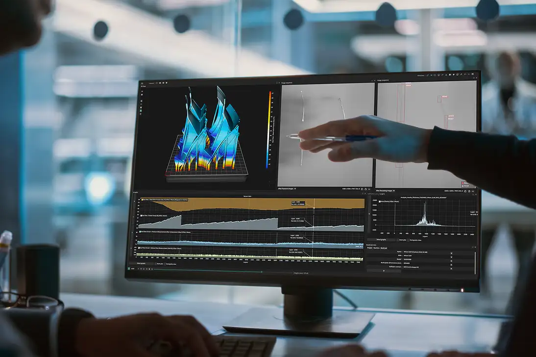 打印工作流程。该系统使用人工智能监控和分析来自尼康 SLM Solutions打印机的 400
