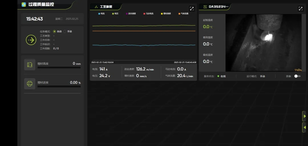 WLSCADA利用专业传感器及信号处理技术,实时高速采集焊接过程中的电流、电压、送丝速度、气流量等关键参数,将其转化为电信号并传输。通过系统自带可视化界面,用户能直观监视这些数据的动态变化,随时掌握焊接状态及设备运行状态,实现焊接流程的高效、智能管控。也可将采集到的数据高速传输给第三方软件,为数据分析、智能控制、AI模型提供数据支撑。