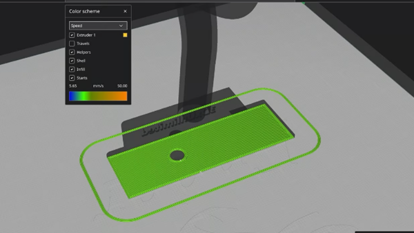 喷嘴在此期间的移动速度也很重要。如果您的模型中有多个部分,并且喷嘴在初始层必须移动很多,则保持移动速度较慢会有所帮助。这有助于保持第一层平稳,因为不会出现突然的抖动。否则,某些部分的边缘可能会很容易从床上脱落。