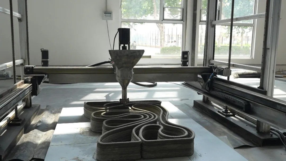 项目团队利用粉煤灰、矿渣等工业固废作为主要原料,开发出固废基3D打印材料,而打印设备的研发,同样攻克了不少难题。其实不只是这个小设备做大,误差的话它也会相应放大。我们通过这个算法重构和这个拓扑优化,从我们机械设计和软件控制方面解决了这些难题,保证我们持续大尺寸打印。如今,公司已经研发了第五代建筑3D打印机,打印精度控制在0.1毫米内,相当于一根头发丝的精细度。支撑这一突破的,是企业三年五次技术迭代的持续攻关。