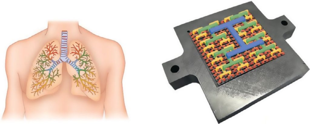 在能源生产领域,研究人员利用3D打印技术开发了仿生设计的聚合物电解质燃料电池(PEFC),功率密度提升了30%。此外,采用类似骨骼结构的钛气体扩散层,性能也提升了15%。太阳能应用方面,通过直接墨水写入(DIW)技术生产的银网电极实现了26.47%的高功率转换效率。同时,基于折纸设计的FDM打印方法支持了柔性、可穿戴光伏电池的制造。