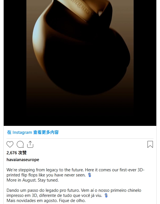 2025年7月12日,南极熊获悉,知名人字拖品牌Havaianas(哈瓦那)与3D打印科技公司Zellerfeld宣布达成战略合作,共同推出一款成创新的3D打印人字拖。该产品将于2023年8月在哥本哈根时装周上首次亮相,标志着哈瓦那正式进军3D打印领域。
