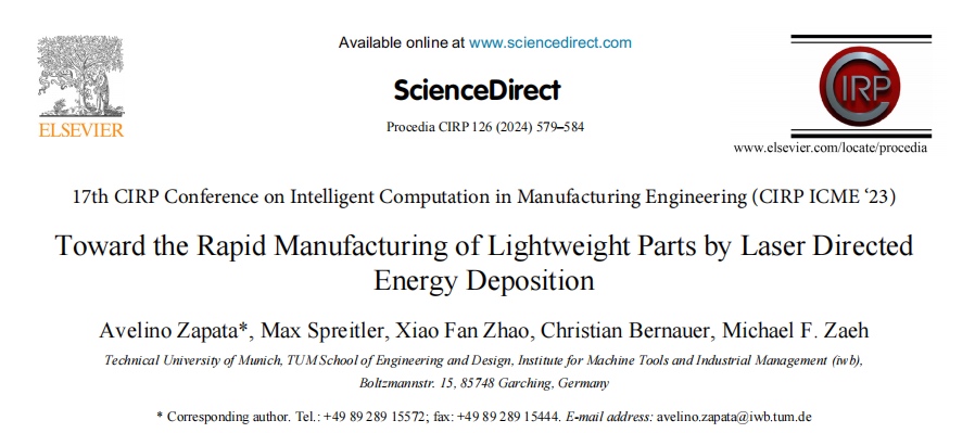 慕尼黑工业大学在工程技术领域期刊Procedia CIRP上发表了题为"Toward the Rapid Manufacturing of