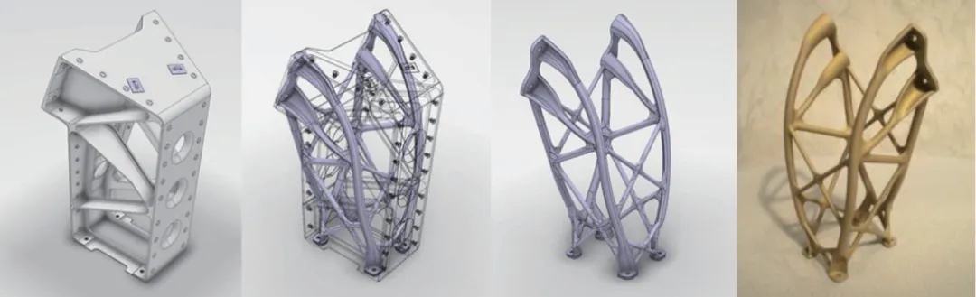 基于激光增材制造工艺的结构拓扑优化设计在航天领域得到应用。结构拓扑优化技术与激光增材制造工艺相结合,可以发挥出激光增材制造工艺在零件轻量化制造方面的最大优势,同时能够实现拓扑优化结构的制造。空中客车防务与宇航公司英国分部采用激光增材制造技术制备了欧洲航天局Eurostar