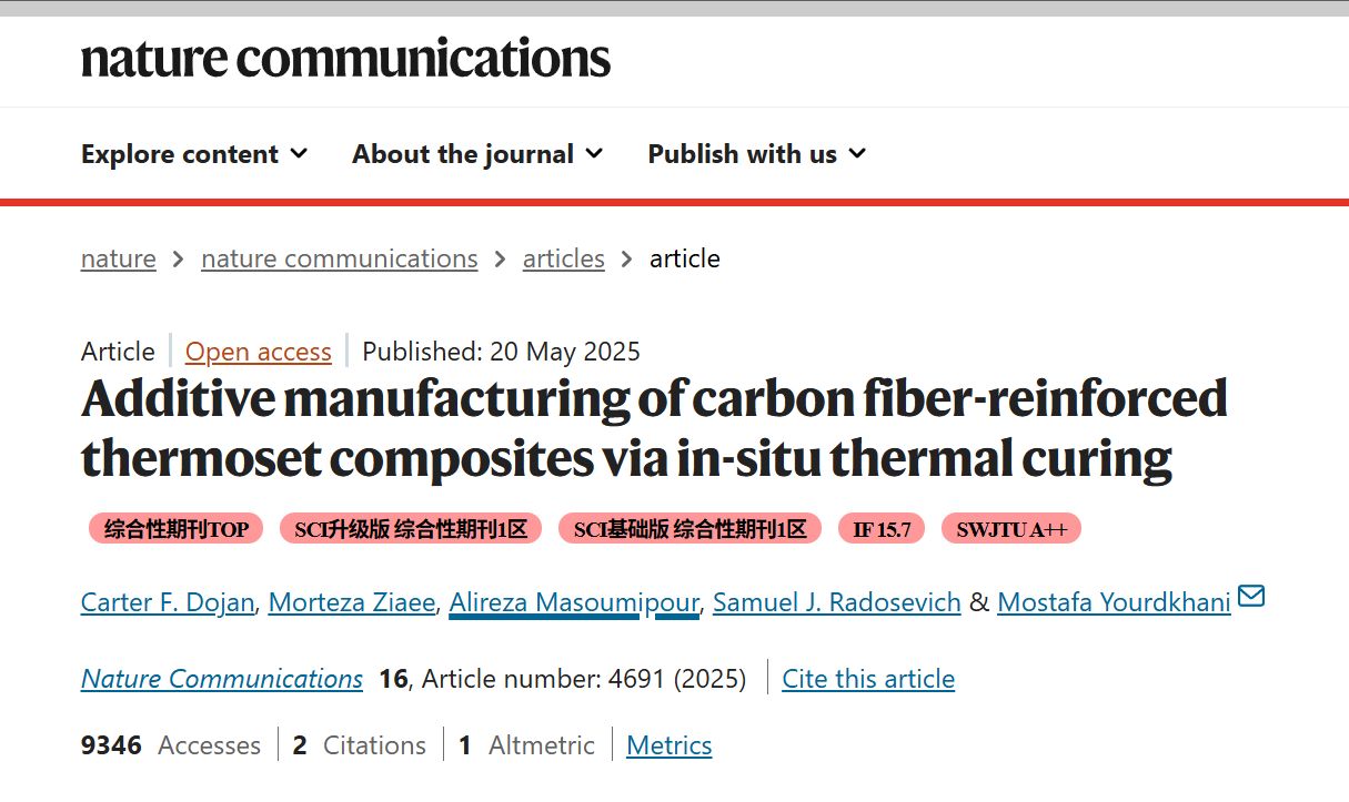 2025年5月,科罗拉多州立大学和亚利桑那州立大学的研究人员成功开发出一种革命性的增材制造方法,可快速制造高性能碳纤维增强热固性复合材料。这项发表在 Nature Communications期刊上的研究,展示了通过原位光热转换实现即时固化,彻底改变了复合材料的生产方式。