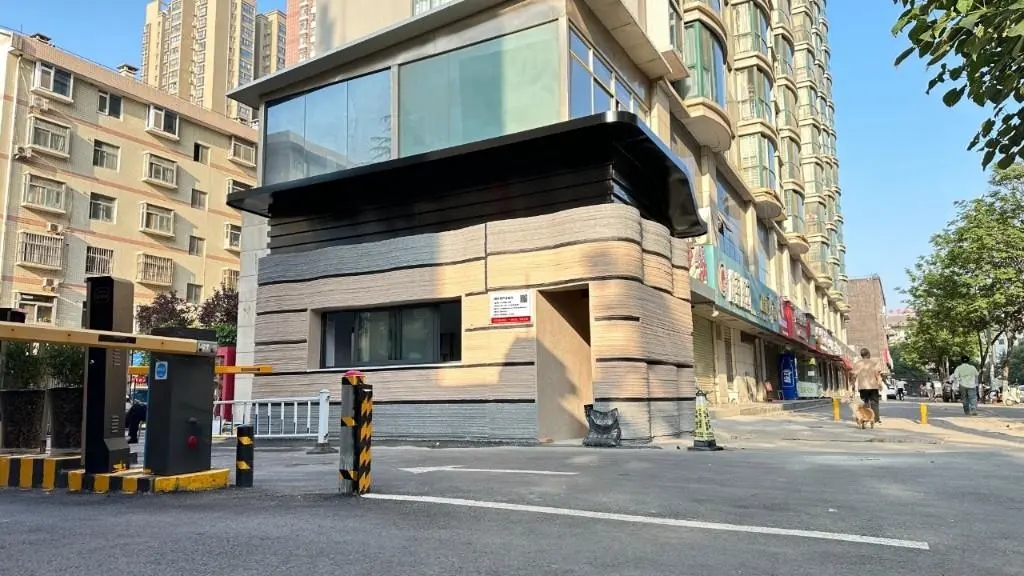据介绍,这座采用钢渣混凝土3D打印技术建造的门卫室,主体规格达6.9米×3.3米。项目依托3D数字打印技术,将冶金固废与特种水泥等原料层层堆叠,塑造出突破传统的流畅外观;其内部独特的空腔结构中填充砂浆与保温材料,大幅提升了保温隔热性能,实现了节能降耗与绿色建筑的深度融合。