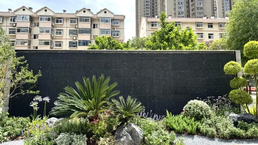 据了解,长8米、高2.5米的水系景观墙,是工艺创新与生态融合的典范。它同样借助3D打印技术,将钢渣与混凝土精准塑形,高效打造出独特的墙身结构。墙前绿植与景石搭配得当,以自然形态柔化了建筑的硬质边界,共同构筑起充满生机的场景,展现了3D打印环保科技与景观美学的完美融合。