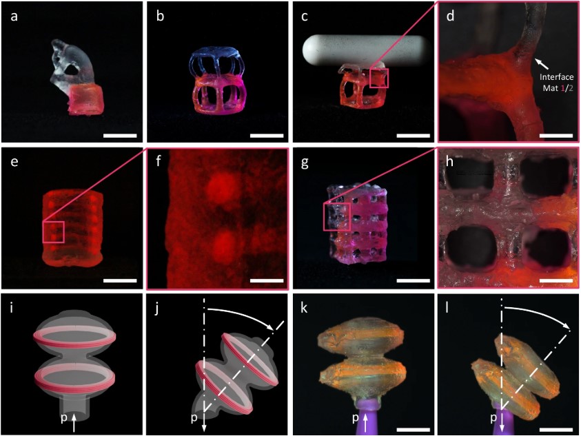 硬件上运行,无需使用波长选择性树脂或硬件增强。它能够在单个体积打印步骤中同时生成正负特征,为可扩展的多材料增材制造开辟了一条发展方向。