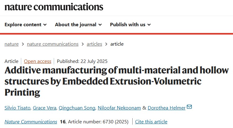 这项名为“嵌入式挤出-体积打印”(EmVP)的方法已在《自然通讯》上发表的一篇题为“Additive