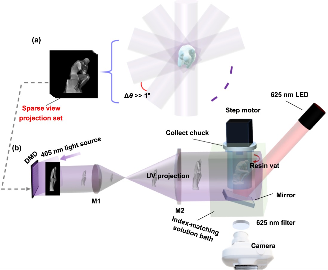 2025年7月29日,北京航空航天大学和香港理工大学的研究人员推出了一种新的 3D 打印技术,可显著减少制造复杂物体所需的时间和光投影次数。研究团队所开发的新方法名为稀疏视图辐照加工体积增材制造(SVIP-VAM),将结构重建所需的投影数量从一千多个减少到仅需15个。