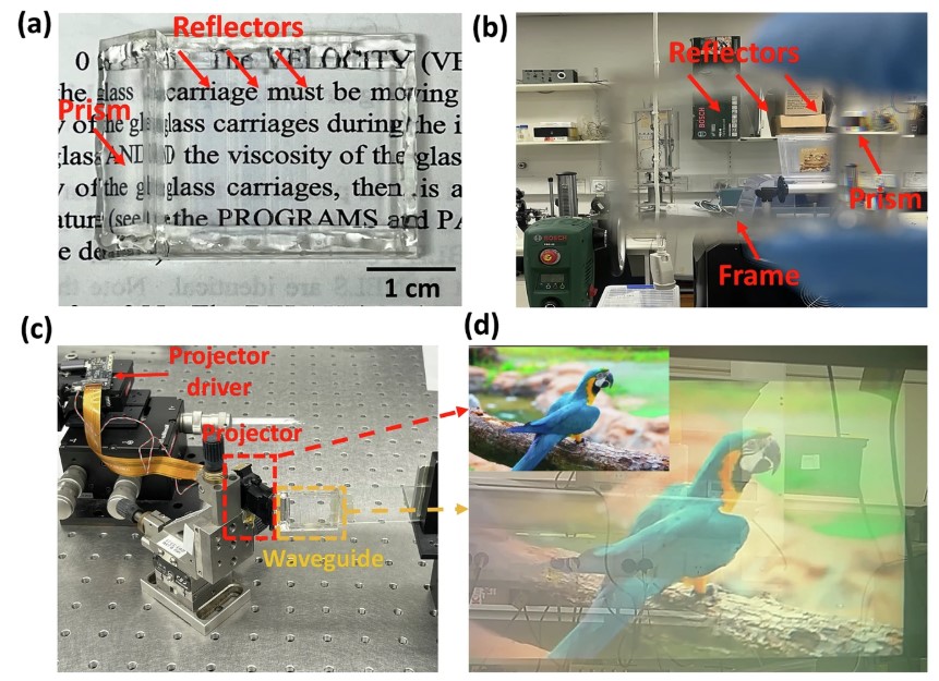 波导性能也可能受到投影系统选择的限制。研究团队使用了标准的LCoS投影仪,可能无法与棱镜的瞳孔位置最佳对齐,从而可能缩小有效视场。未来,他们提出了定制设计的投影仪方案。