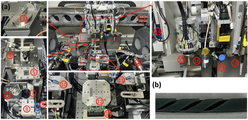 德国光子自动化公司FiconTEC与研究团队合作开发了一套定制波导组装系统,集成了龙门系统、压力传感反射器拾取器、紫外线胶水制备平台以及用于对准的高分辨率成像系统。这套系统目前正在评估,旨在支持基于本研究中专利波导的可扩展生产。为了简化操作,作者选择玻璃作为腔体密封材料,并指出透射率稳定在 93%。他们推荐使用蓝宝石作为未来的潜在替代品,因为蓝宝石具有较高的硬度和耐刮擦性。其他改进措施包括添加 MgF₂/SiO₂ 等防反射涂层,以减少更宽视角下的反射损失。